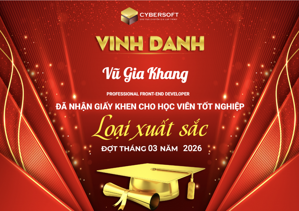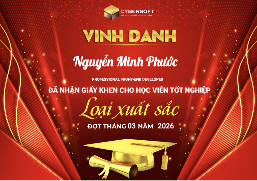 CyberSoft xin vinh danh và gửi lời chúc mừng nồng nhiệt đến các học viên vừa tốt nghiệp loại XUẤT SẮC!