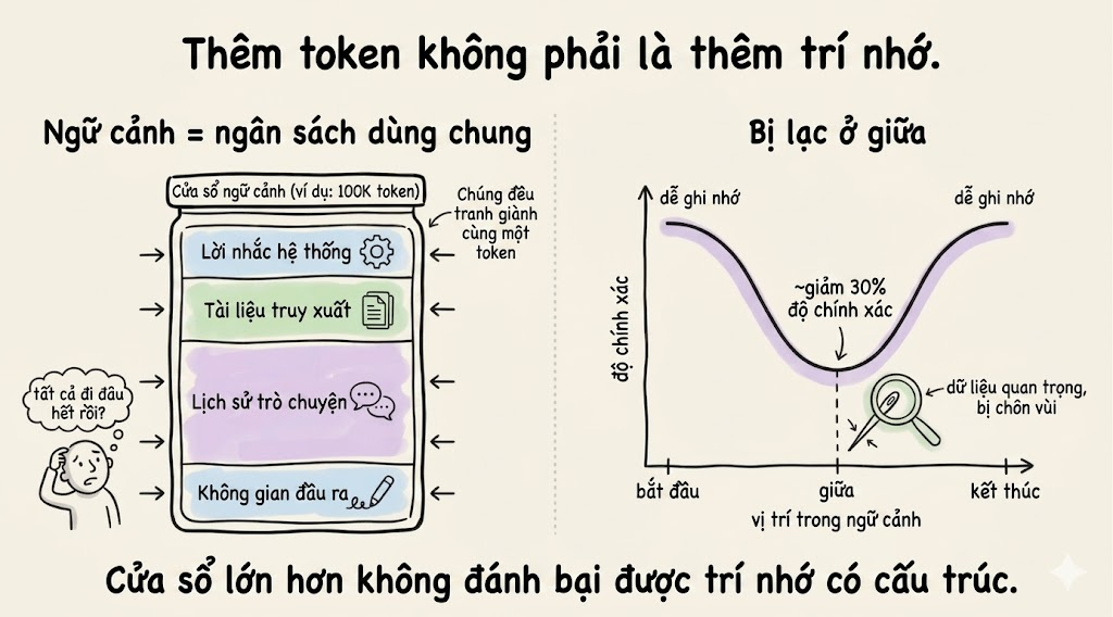 Nhưng vẫn có giới hạn. Bộ nhớ ngữ cảnh (context window) không phải vô hạn. Prompt quá dài sẽ dễ rối và lẫn thông tin. AI cũng không chú ý đều hết mọi phần, thường bỏ sót nội dung nằm ở giữa đoạn dài (đó là vấn đề “lost in the middle”).