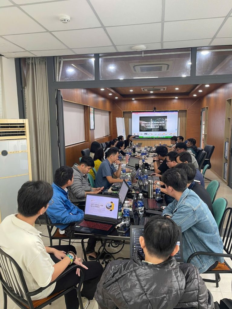Chương trình đào tạo tập trung vào việc trang bị cho học viên các kỹ năng ứng dụng AI vào công việc hằng ngày, bao gồm soạn thảo – báo cáo, tổng hợp & phân tích dữ liệu, tự động hóa quy trình văn phòng, sáng tạo nội dung và đưa ra quyết định dựa trên công cụ AI. Với phương pháp ứng dụng AI thực chiến vào công việc, các anh/chị được thực hành trực tiếp và áp dụng ngay vào công việc thực tế, giúp cải thiện năng suất, tiết kiệm thời gian và nâng cao chất lượng công việc.